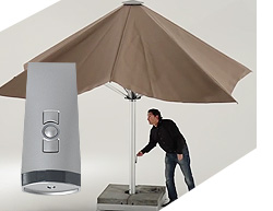 Den Schirm öffnen und schließen Sie mit der Handkurbel oder dem Motorantrieb mit Fernbedienung. Zudem verfügt der Palazzo® Style bei Motorüberhitzung über einen automatischen Abschaltmodus sowie eine Notfunktion für ein rasches Schließen.