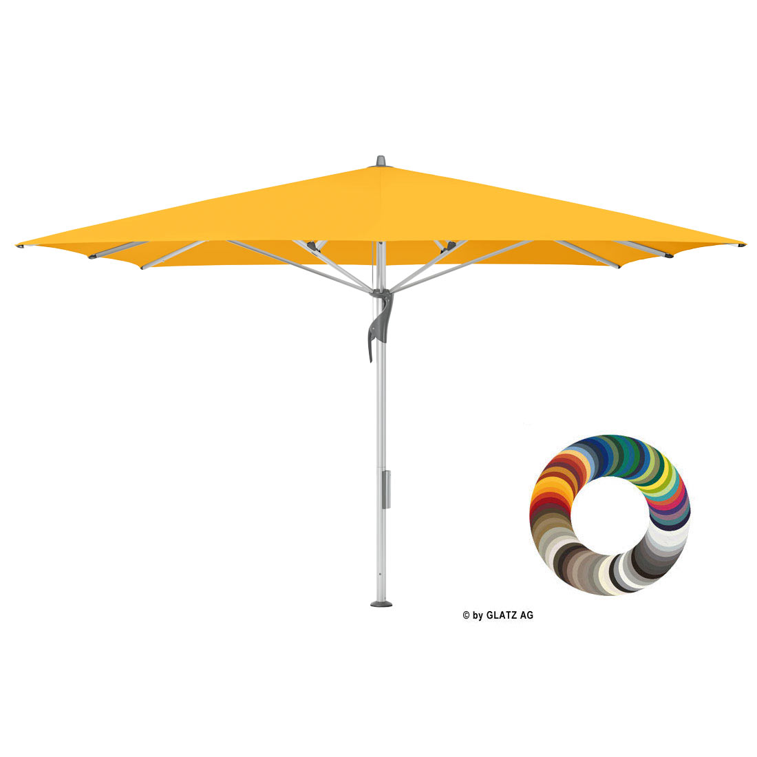 Nicht zu groß und nicht zu klein, erfüllt der FORTELLO® sämtliche Anforderungen der Hotellerie und Gastronomie: Dank seines gegenläufigen Servo-Öffnungsprinzips ist er easy zu handhaben, lässt sich dank teilbarem Mast und geringem Gewicht bequem transportieren und in Nullkommanichts wegräumen. Aufgrund seiner stabilen Konstruktion hält der Glatz FORTELLO® Windgeschwindigkeiten bis zu 100 km/h stand und lässt sich auf Wunsch mit LED-Licht ausstatten. Dieser Sonnenschirm von GLATZ sorgt nicht nur für optimalen Sonnen- und Regenschutz, sondern bietet vor allem eins: Eine ideale Fläche für Werbelogos und -schriftzüge à la couleur. Der FORTELLO® ist sowohl im runden Format mit einem Durchmesser von 400 cm als auch quadratisch in den Grössen 400 x 400 cm, 350 x 350 cm und 300 x 300 cm, sowie in der rechteckigen Größe 400 x 300 cm erhältlich und empfiehlt sich aufgrund seiner vielfältigen Einsatzmöglichkeiten hervorragend für die Hotellerie und das Gastgewerbe.