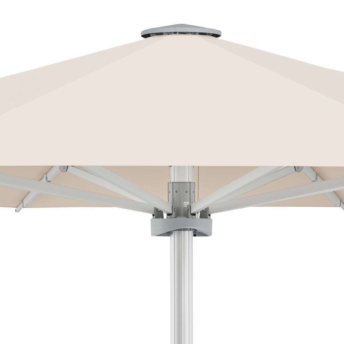 Dank optionaler Heizung und Beleuchtung läßt sich der Plausch bis in den späten Abend verlängern. Alle Steuerungskomponenten und Kabel sind in Schirmmast und Gestell integriert und per Funk zu bedienen. Bei Fragen zu Sonderzubehör helfen wir Ihnen gerne weiter.
