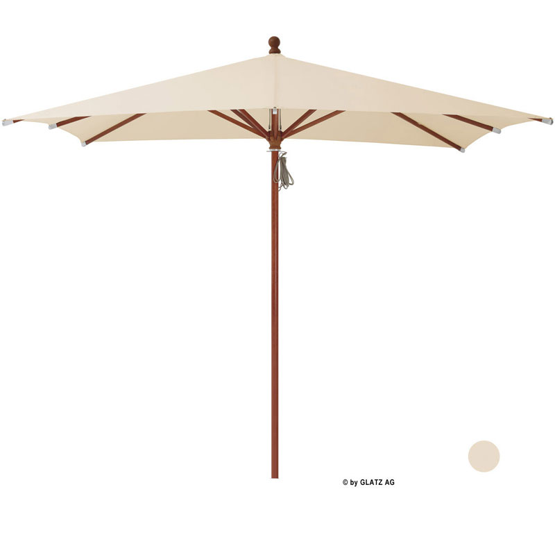 Der Holzschirm Piazza easy ist funktional, trotz der High Tech belastet er den Geldbeutel wenig. Das naturfarbenen Ahornholz verleiht dem Schirmdach einen romantischen Auftritt und bietet ihren Gästen reichlich Platz, sich an einem heißen Sommertag im lauschigen Schatten zu entspannen. Zur Auswahl stehen beim Glatz Piazza easy zwei runde und ein rechteckiges Format. Besonders mit Gartenmöbeln im Landhausstil harmoniert dieser Holz-Sonnenschirm optisch hervorragend.