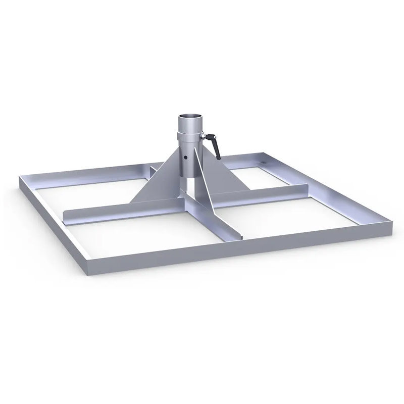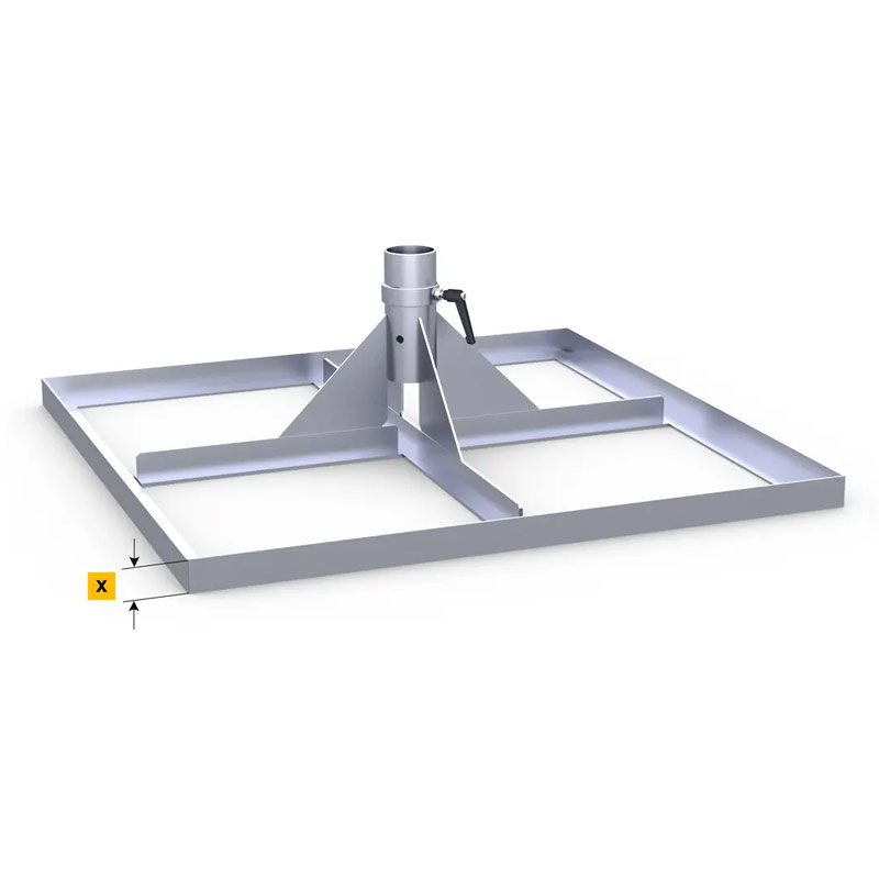 Der MAY Standrahmen RZ111 bietet eine stabile und langlebige Lösung zur Beschwerung von ihrem May Rialto Pendelschirm. Er wurde speziell dafür entwickelt, zwei Sätze handelsüblicher Betonplatten im Format 50 × 50 × 5 cm sicher aufzunehmen und sorgt damit für ein zuverlässiges Standgewicht. Durch seine robuste Stahlkonstruktion sowie die hochwertige Verzinkung ist der RZ111 optimal gegen Witterungseinflüsse geschützt und eignet sich ideal für den dauerhaften Einsatz im Garten, auf der Terrasse, in der Gastronomie und auf öffentlichen Flächen. Die offene Rahmenkonstruktion erleichtert das Einlegen der Platten und gewährleistet eine schnelle Montage ohne Werkzeug.