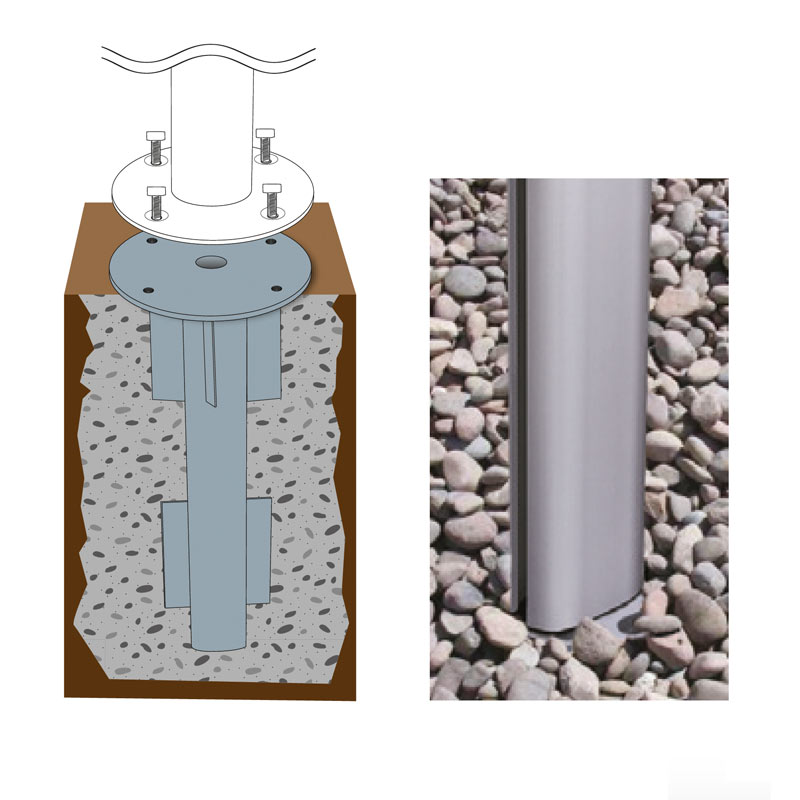Als besonders stabile Befestigung dient die Bodenhülse. Sie wird ebenerdig im Fundament eingebaut. Die nötigen Abmessungen sind in der beiliegenden Montageanleitung beschrieben.