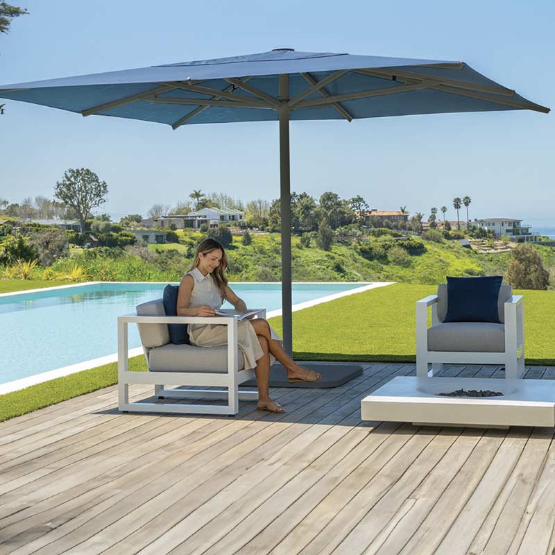 Der Sonnenschirm Astral ist mit seinen Dimensionen optimal für große Beschattungssituationen geeignet. Mit seiner stabilen Konstruktion ist der perfekte Schirm für windexponierte Lagen.