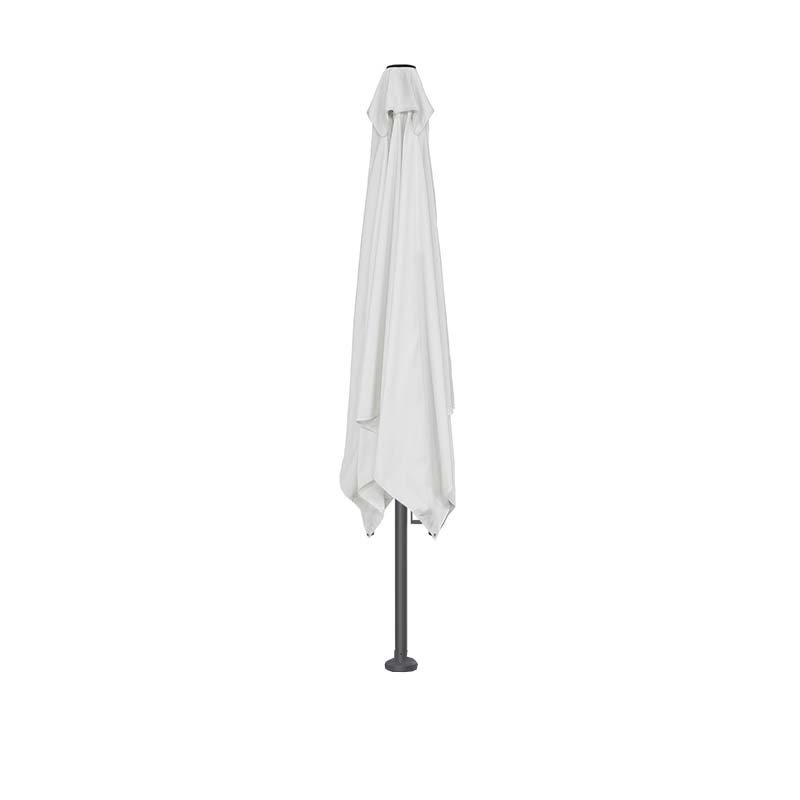 Der Shademaker Astral wirkt trotz seiner Größe im geschlossenen Zustand aufgeräumt und nimmt nur wenig Platz in Anspruch. Die im Lieferumfang enthaltene Schutzhülle mit Stab und Reißverschluss wird in dieser Position am stehenden Schirm angebracht. Hierfür wird keine Leiter benötigt.